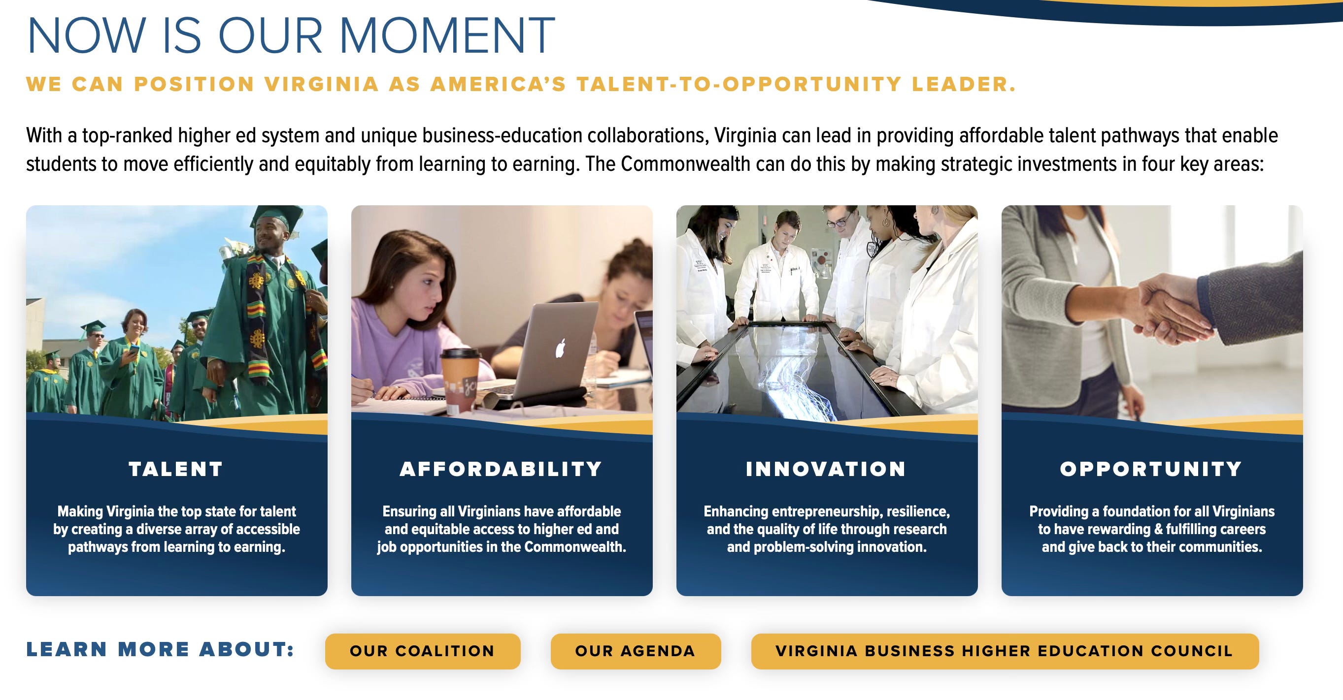 The Virginia Business Higher Education Council is working to strengthen Virginia’s position as the Top State for Talent through strategic higher education investment.