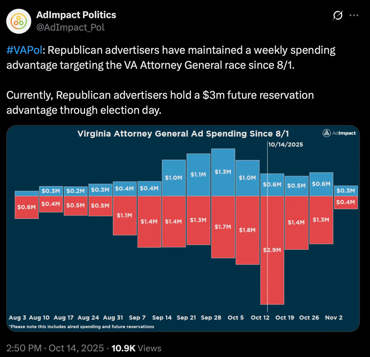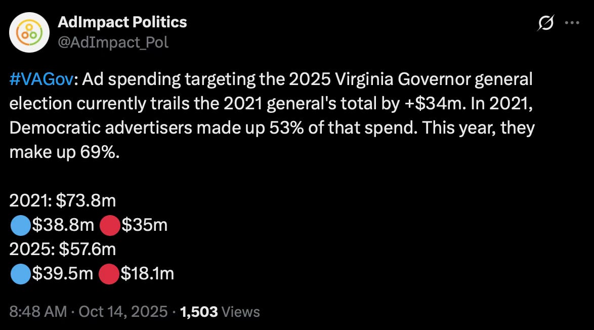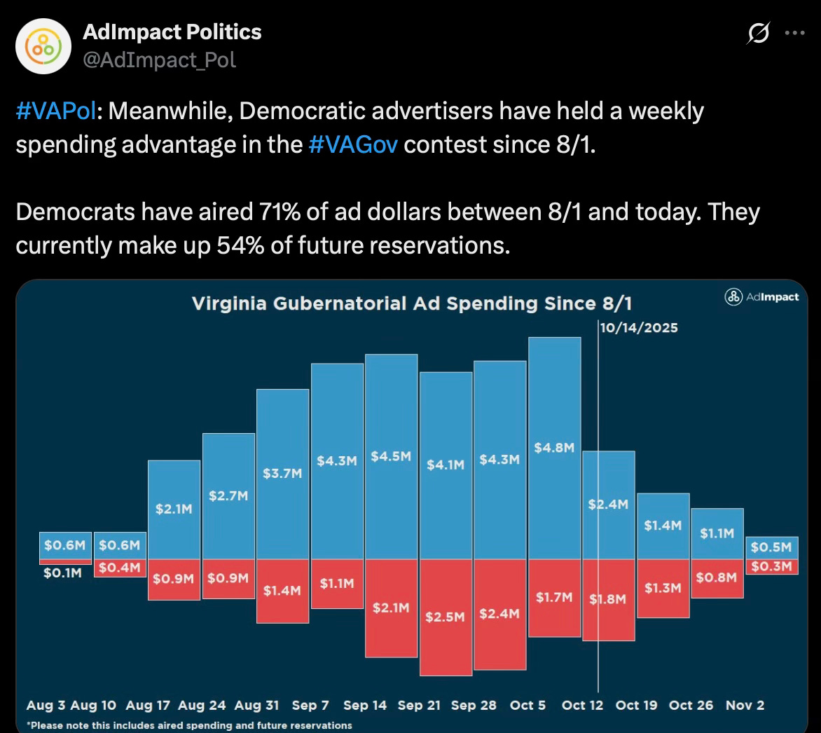 And the MASSIVE spike in AG spending post Jay Jones Res Horribilis with closing spend advantage for Miyares: