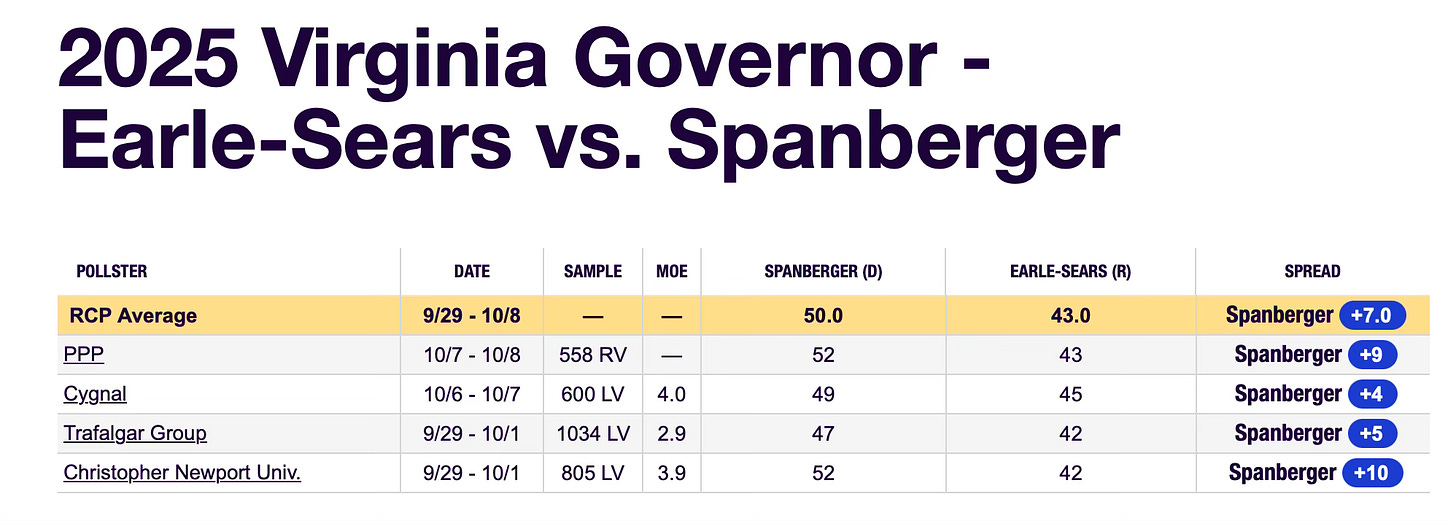 Remember - 2025 is a BASE election and Virginia is a D+3 state.