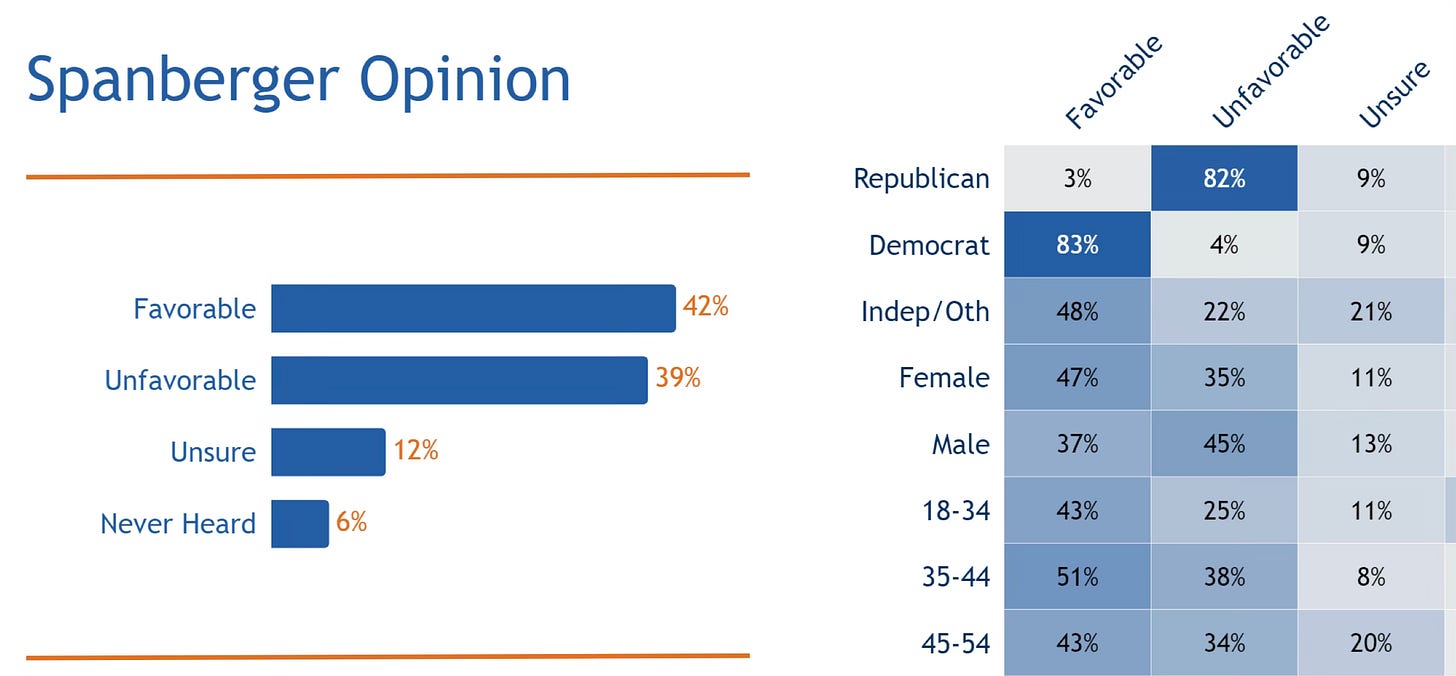 Spanberger Fave/Unfave is +26 among Independents and (below) Earle-Sears is -20. But the race is just +5 for Spanberger?