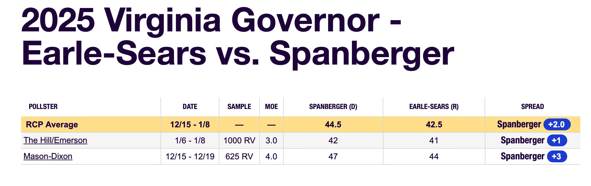 Heretofore Earle-Sears has not been attacked very much and is vulnerable in being framed by her opponent. She’s low on cash and most of the political news will be about the new Trump Administration. Punching through all of that will be a problem, BUT Virginia and New Jersey are also the only big races this year.