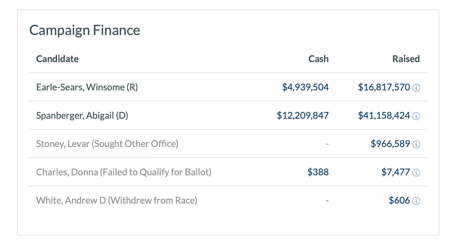 Bottom line - Spanberger is ahead - still of outside the Margin of Error (MOE) and had a 3 to 1 advantage in Cash On Hand (COH).
